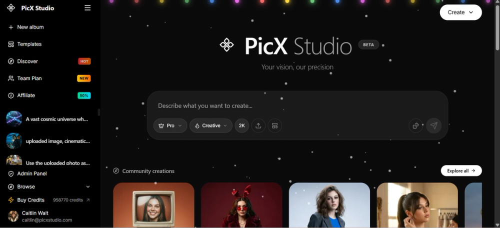 PicX Studio is a next-generation, AI-powered design and image-generation platform built to make creating professional visuals as easy as sending a text message. We replace complicated editing tools with a conversational interface—simply describe what you want, and our AI acts as your personal designer to create or edit visuals instantly.